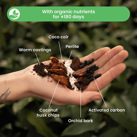 Most peat-based soil turns sour fast. It compacts, suffocates roots, and loses structure. That means annually throwing out soil and unnecessary stress for you (and your plant).