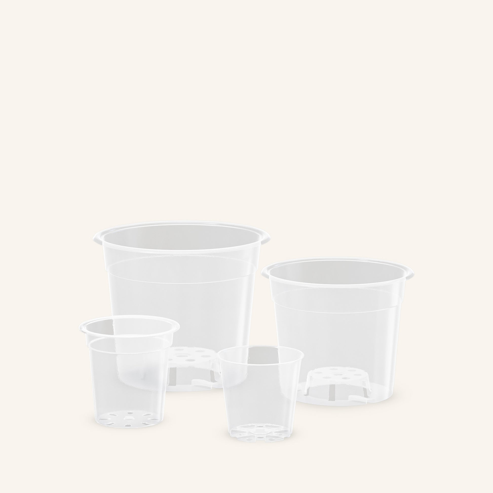 Genomskinlig och robust. Se rötterna växa! Tillverkad av helt återvinningsbar PP5-plast.