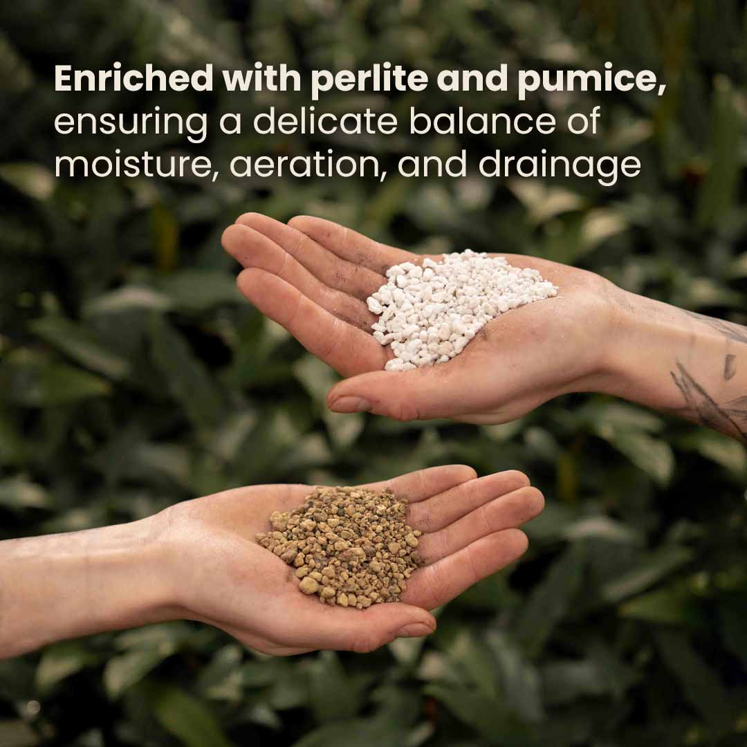 Bonsai är en mycket känslig växt som behöver bästa möjliga skötsel för att trivas. Bonsaimixen får inte bli hård när den är torr och ska ha god luftning och dränering. Tillsatsen av pimpsten och perlit ger detta.