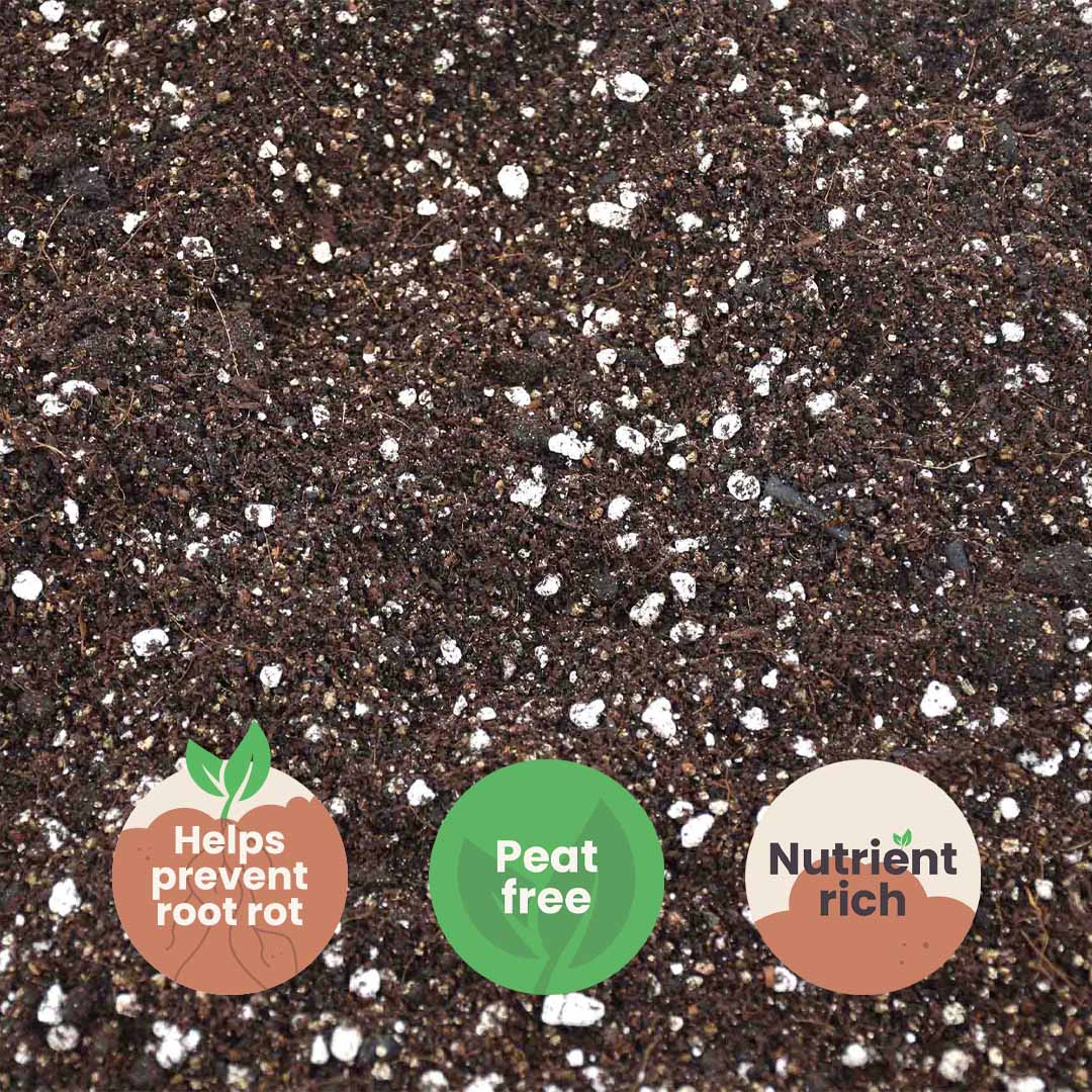 Calathea & Maranta-mixen innehåller både perlit och vermikulit, vilket ger god dränering samtidigt som vermikuliten behåller en del fukt. Detta hjälper till att hålla jorden jämnt fuktig. Rotsystemet blir friskare och större, och det minskar behovet av att behöva vattna växten alltför ofta, vilket ger dig mer tid att beundra dina växter!