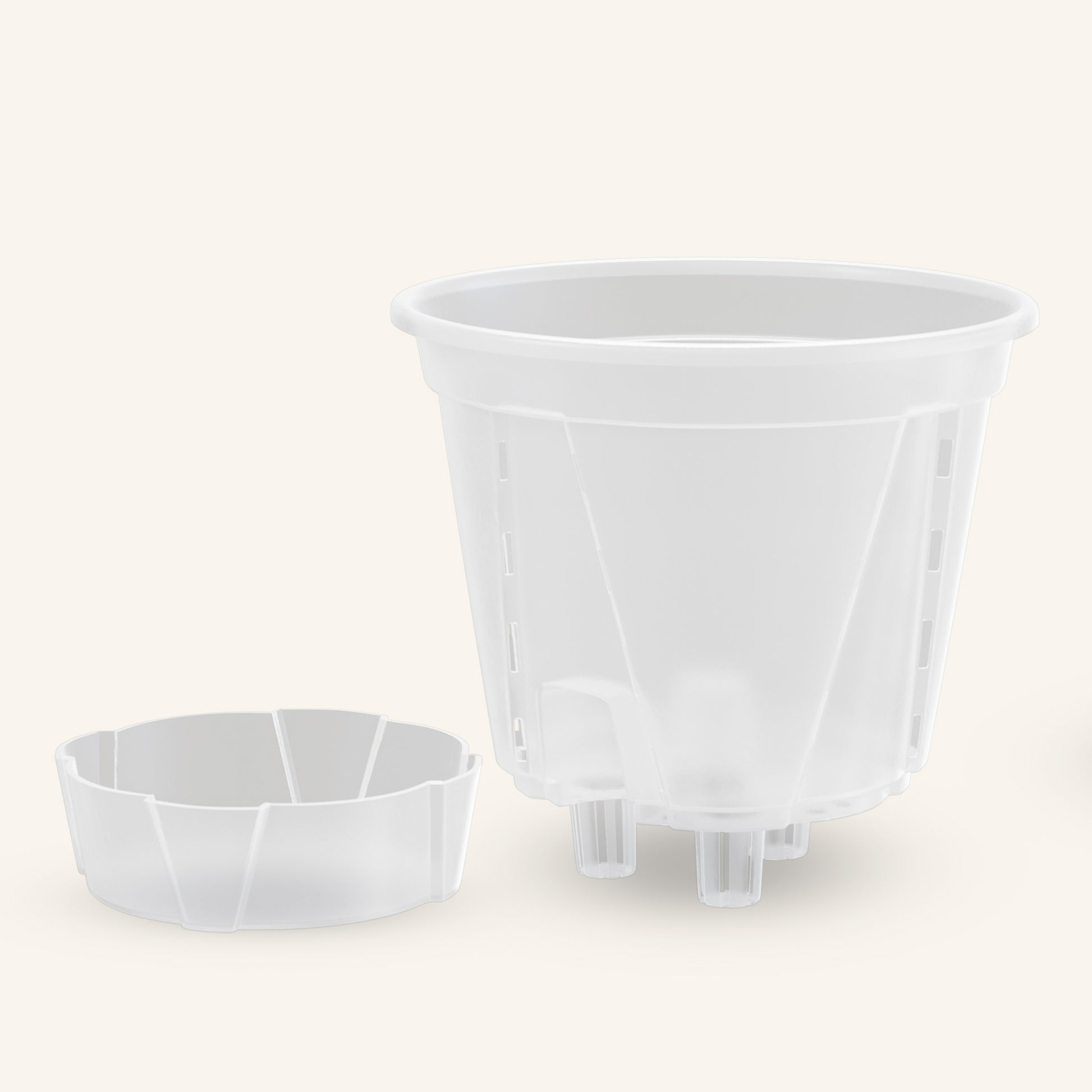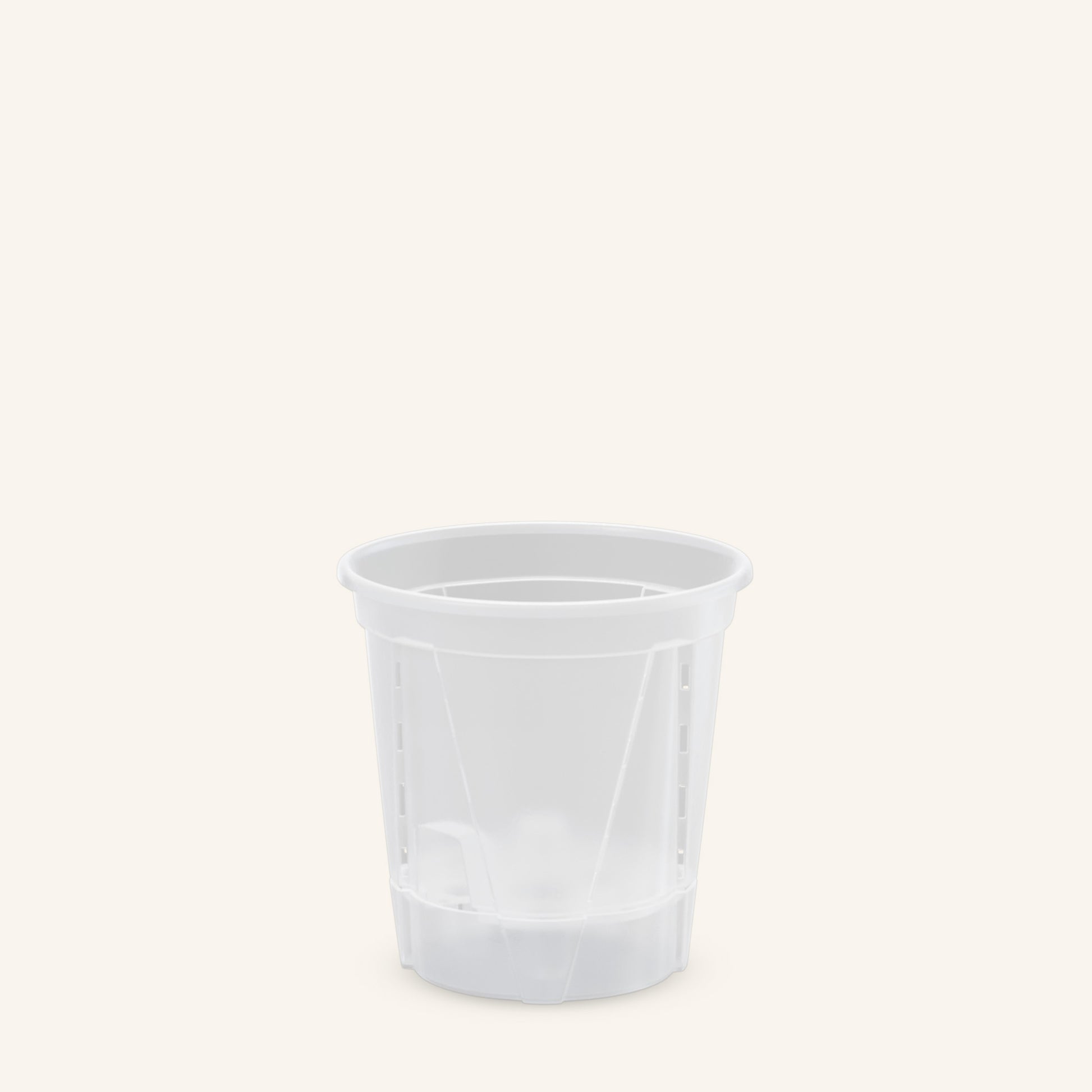 Dessa lättskötta krukor är tillverkade av hållbar PP5-plast och är helt återvinningsbara. De kombinerar minimalistisk design med praktisk funktionalitet. Deras rena utseende passar perfekt in i alla miljöer, och deras transparens gör det enkelt att upptäcka nya rötter, mögel eller fuktproblem i ett tidigt skede.